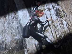It took four or five days; every day we abseiled off and tied off the ropes. We stayed in a Marines’ hut near Plymouth. I got a nasty surprise one day when I jumared back up. When I got to the stance, I pulled the peg, I’d just being jumaring on, straight out by hand. I hastily bashed it back in again with my peg hammer.