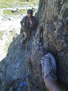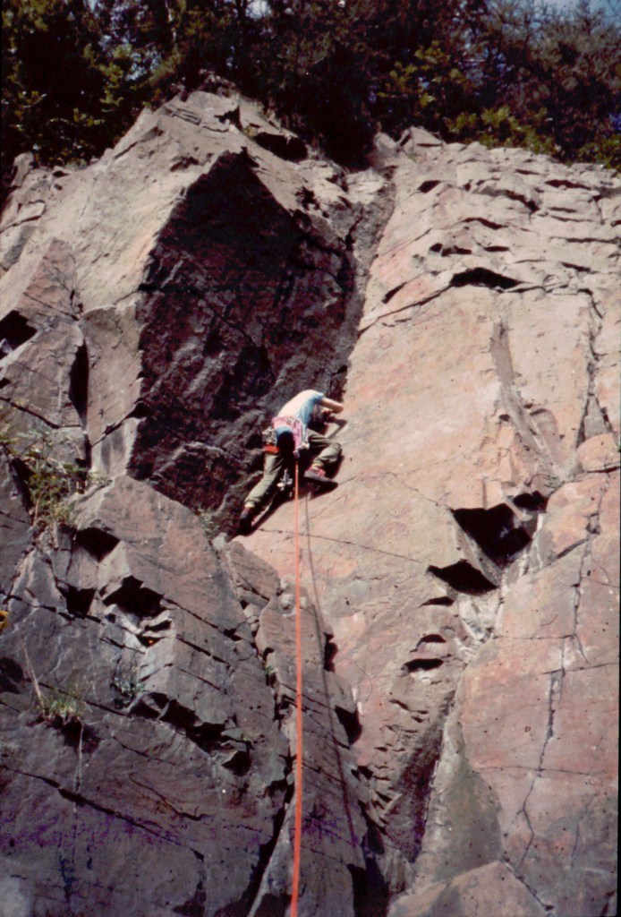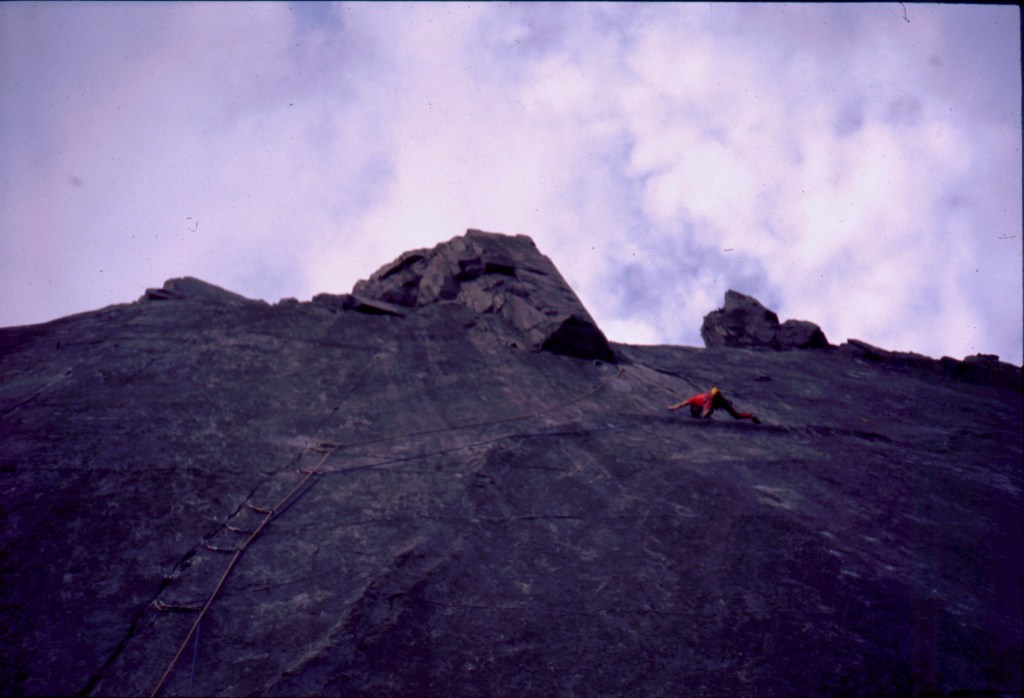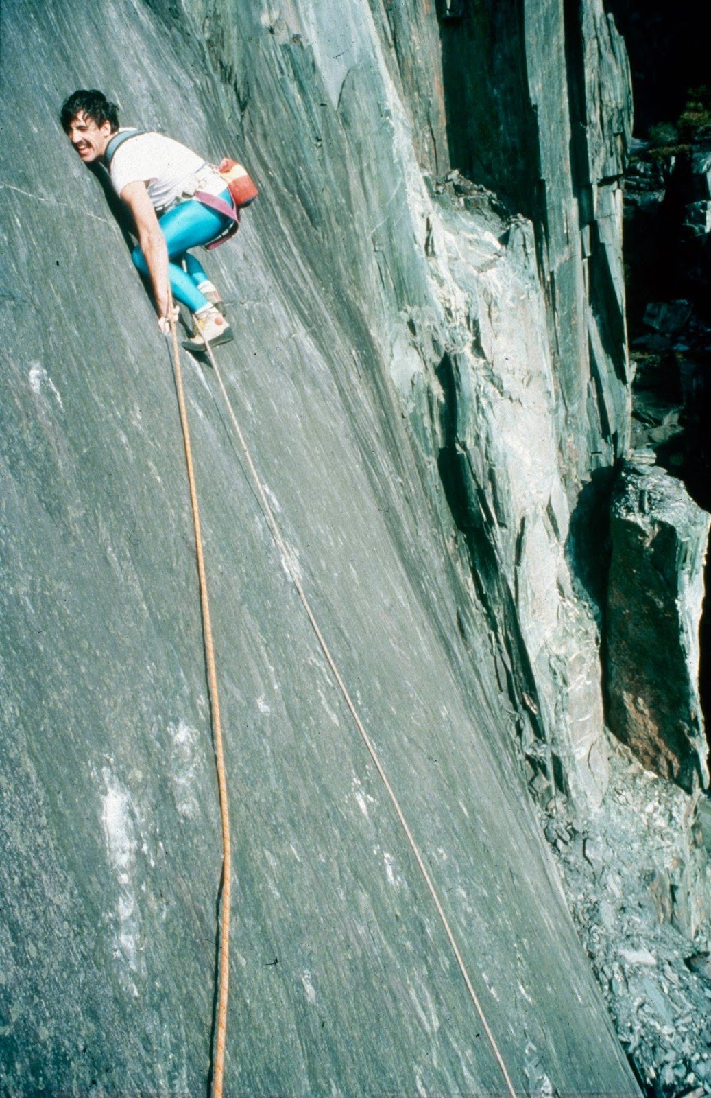 With fortitude, and teenage luck, he’d held me and that wasn’t the last time a Tricam saved my bacon; thank you Jeff Lowe. A few days later we went back and finished it. We graded it E1 5b because that was the hardest grade that we had climbed at that point. Apocalypse, in retrospect might be E1 or E2; it could also be E4. We’ll never know because the route is unrepeated and no longer exists – the buttress has since been blown up with explosives.
