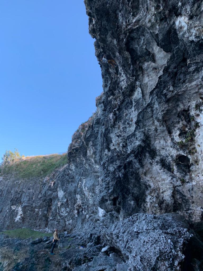 With a cold front approaching and humidity at 50% (unusual for Bermuda) there were good conditions at The Great Head today. The 20 knot SSE wind was wetting the cliff with spray but this was being dried by the wind as fast as it accumulated.