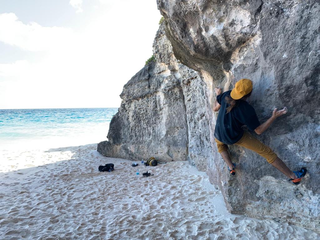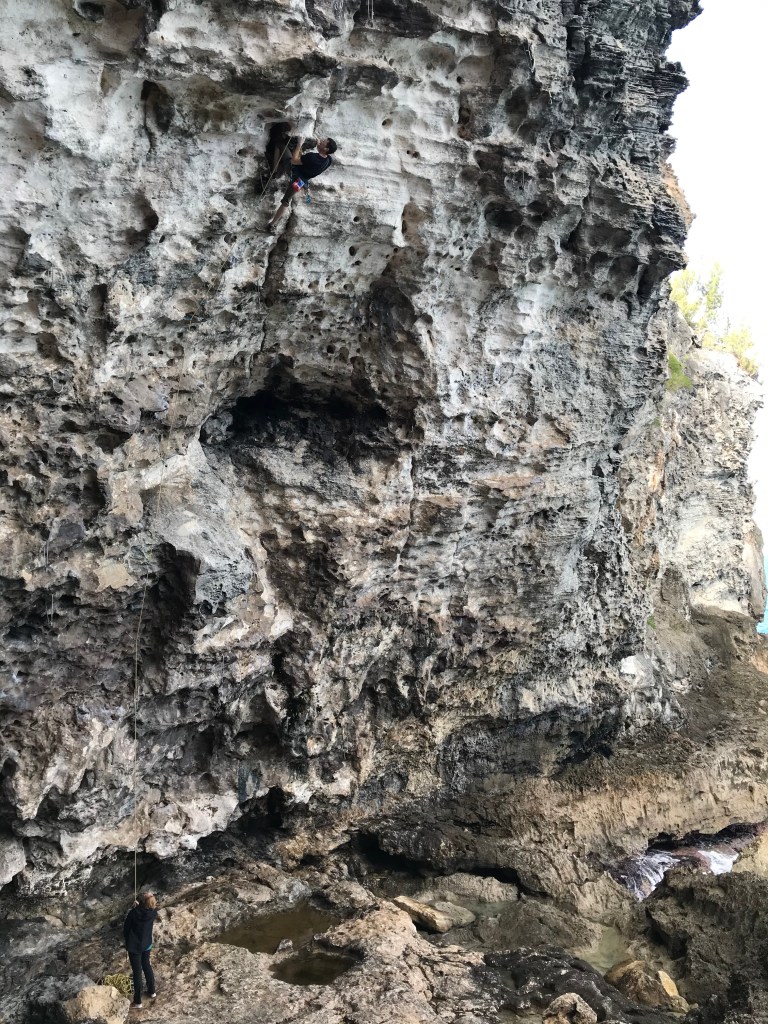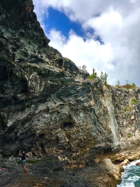 With Hurricane Teddy knocking on our door and creating massive swells on the south shore I climbed a new route today in Hogfish Bay.