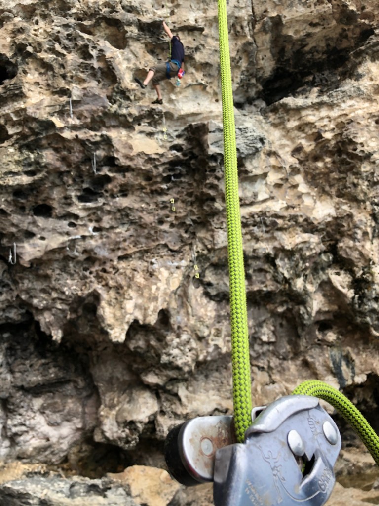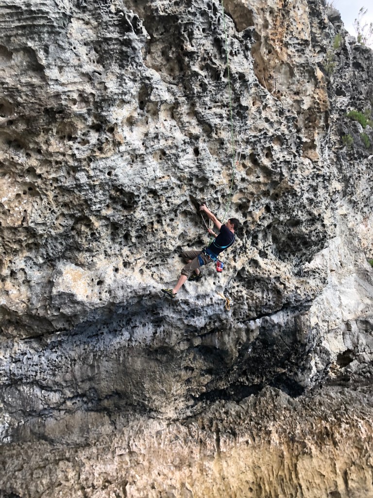 Conditions were not great at The Great Head today, but with a Coronavirus lockdown and the end of the sport climbing season looming I managed to bluff my way up the Dead Man’s Hand.