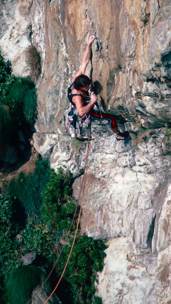 So it was to my surprise at the ripe old age of 15 that I came across Patrick at The Breck. The Breck was my local bouldering area on the Wirral. One hot summer’s day, on a school lunch time, I was doing a spot of bouldering on the hallowed walls. Trying mostly not to get too much chalk on my school jumper and avoid landing on the previous nights broken alcohol bottles! When I came across a French man the spit of the man in this poster. I had done a spot of French, with Mr Geuarmour at school, so started a spot of friendly banter. So after a while he told me he liked croissants, which way to the nearest magazine shop and that he didn’t like escargot. He then told me his name was Patrick. Bloody hell it’s Patrick Edlinger I thought. His long straight hair, head band, perfect un-British tan, WB vest, a big pink chalk bag and some funny looking rock boots with a strange French sounding name, obviously all this gave the game away. We bouldered a wee bit together and I showed him around some of the best problems. He wasn’t bad but I was on top of my game and blew him away on the hardest problem on the Bluebell Traverse! I was a bit surprised by this (as I was only a sprog) and seriously thought him not quite as good as our local climbing hero, Lou Brown. But perhaps a bit better than Mike Owen, King of Pex. Still The Breck was the centre of world climbing, as far as we were concerned, and why not come all the way from sunny Haute Provence for the climbing experience of a lifetime.