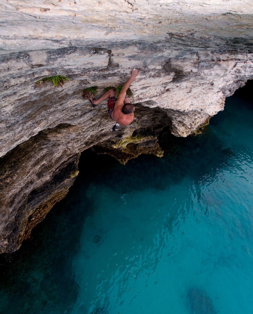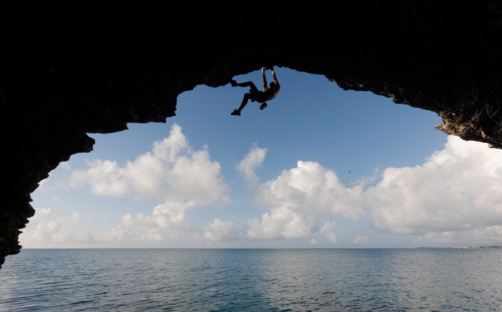 Well, in my opinion, there is no environment more optimal for this than the ‘turquoise space’ in Bermuda where the cliffs drop into the water and we can deep water solo.